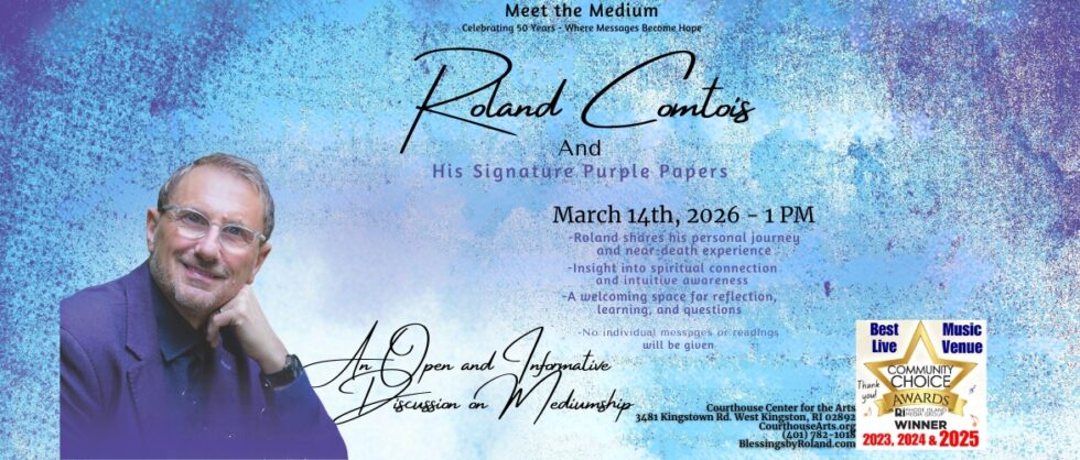 ROLAND COMTOIS – Meet the Medium 3/14/26 SAT 1PM Featured March 14 @ 1:00 pm - 3:00 pm Courthouse Center for the Arts 3481 Kingstown Rd, West Kingston, RI, United States RSVP FREE TICKETS