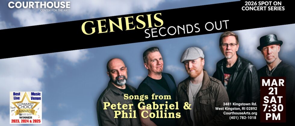 Genesis – Seconds Out 3-21 SAT 7:30pm Featured March 21 @ 7:30 pm - 10:00 pm Courthouse Center for the Arts 3481 Kingstown Rd, West Kingston, RI, United States Buy Tickets