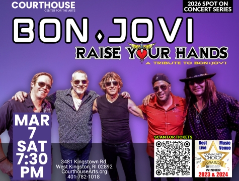 Bon Jovi – Raise Your Hands 3/7/26 SAT 7:30PM Featured March 7 @ 7:30 pm - 10:00 pm Courthouse Center for the Arts 3481 Kingstown Rd, West Kingston, RI, United States Buy Tickets