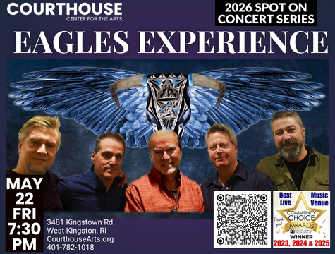 Eagles – Eagles Experience 5/22/26 FRI 7:30PM Featured May 22 @ 7:30 pm - 10:00 pm Courthouse Center for the Arts 3481 Kingstown Rd, West Kingston, RI, United States Buy Tickets